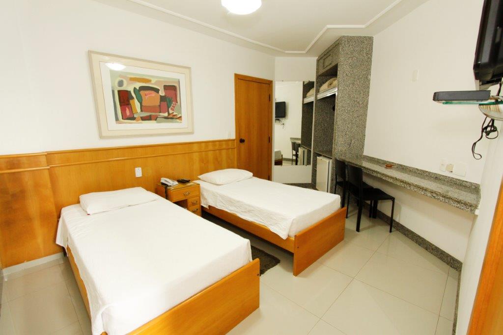 Todos as nossas acomodações estão preparados para que você tenha uma estadia aconchegante, seja para uma hospedagem à trabalho ou para descanso. No hotel, todos os quartos possuem mesa de trabalho, Smart TV, frigobar e microondas, além de ar condicionado split e guarda-roupa.
